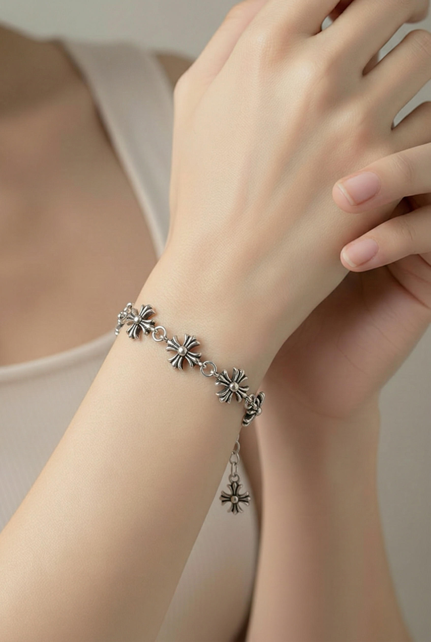 • Gentle Cleansing: Use a soft, lint-free cloth to restore its silver shine after wearing.