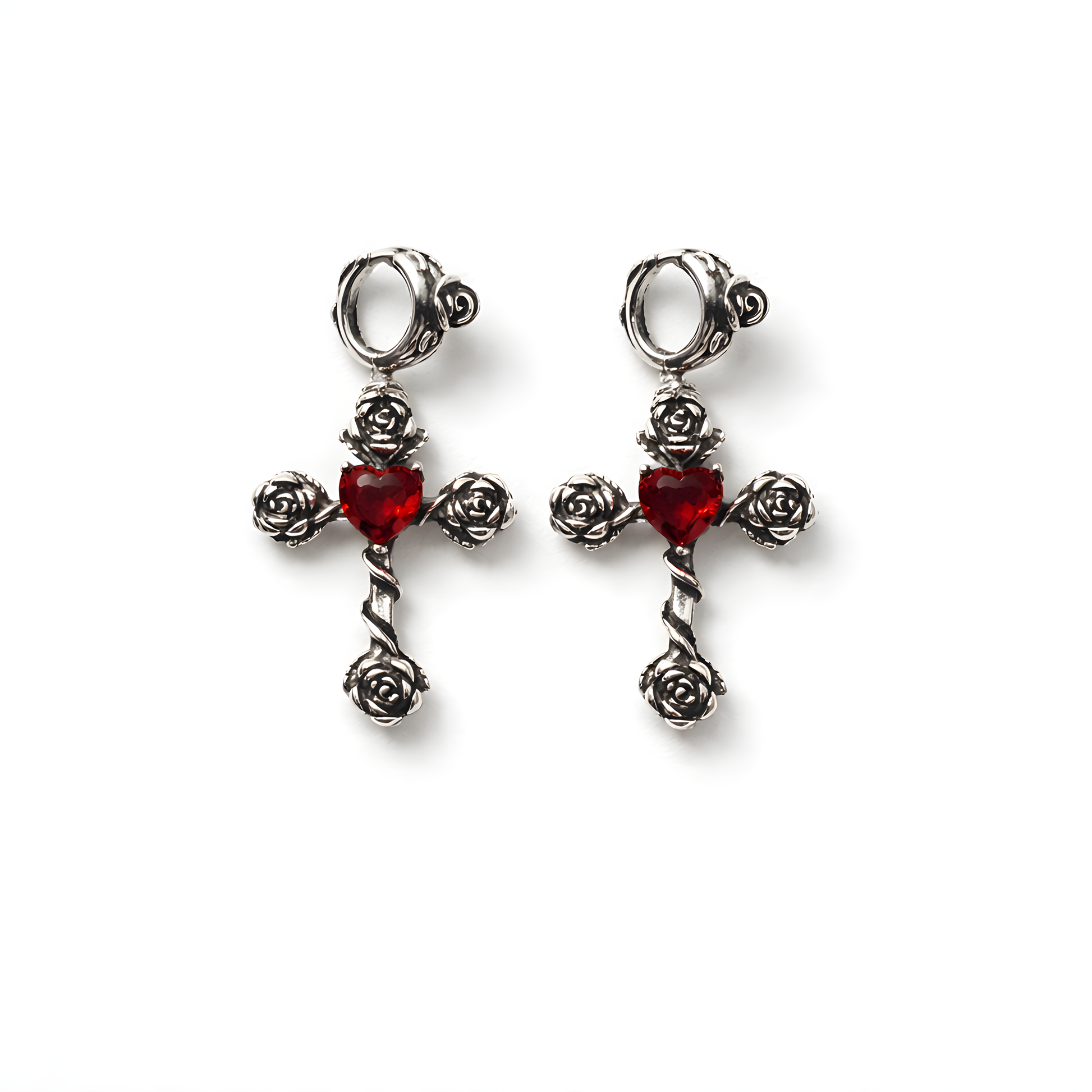 Statement piece, unique rose pattern design with red zircon, 925 sterling silver post, Nickel free and Hypoallergenic.