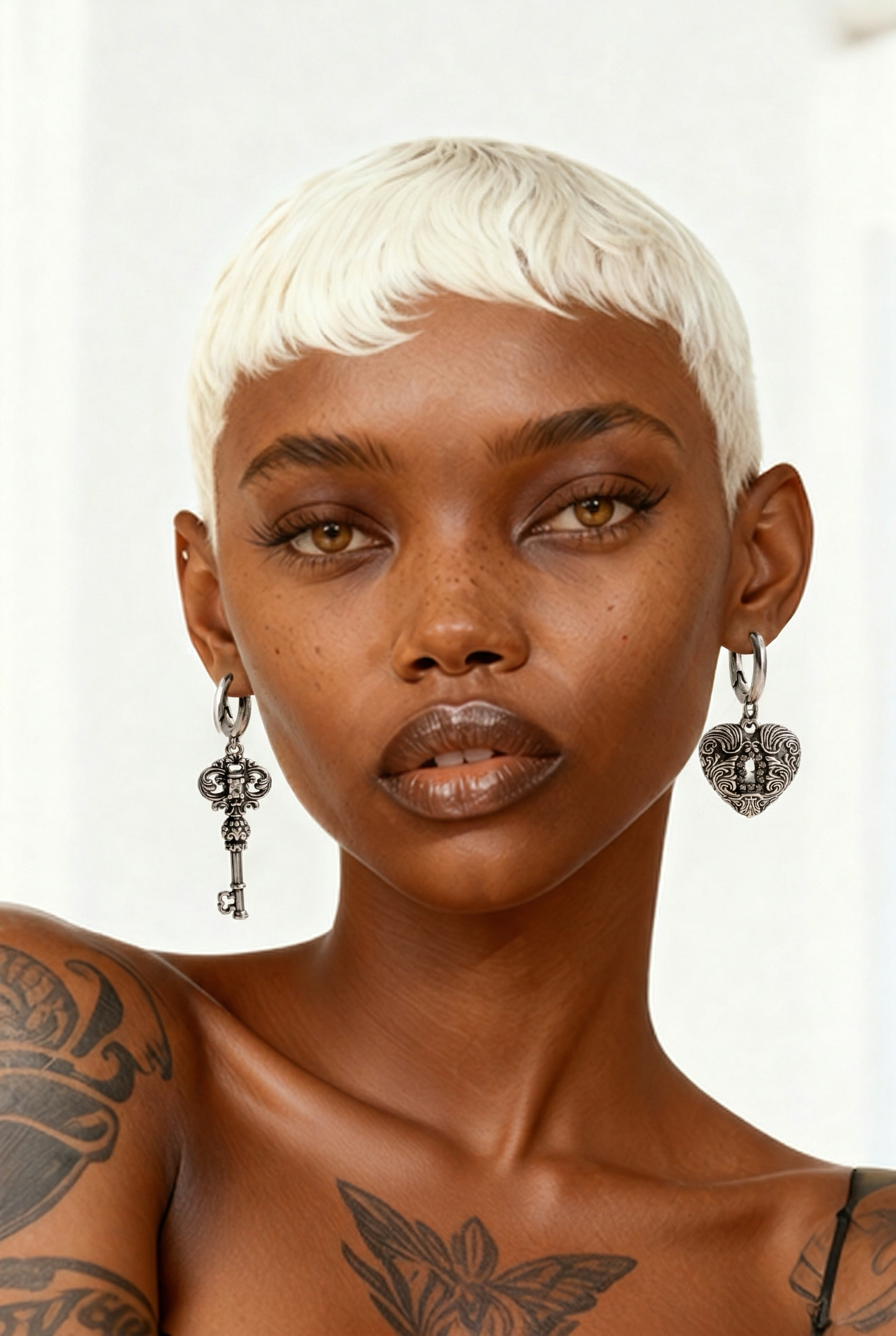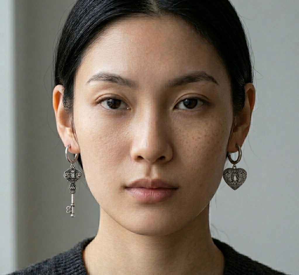 Unique mismatched design (key & heart lock)